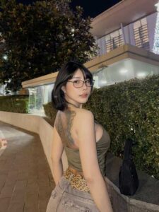 ยังไม่หมด อันนี้ก็เซ็กซี่ไปกว่าเดิมอีก กับงานถ่ายเล่นตอนกลางคืนตอนไปเที่ยวเล่นน้ำในสระว่ายน้ำส่วนตัว ด้วยชุดทูพีชแบบเซ็กซี่มาก บราสีดำลายตาข่ายที่แทบจะไม่ได้ปิดอะไรเลย มีเพียงแค่เส้นบางๆ ปิดจุกไว้เท่านั้นเอง กับบิกินี่แบบจีสตริงที่แทบปิดอะไรไม่อยู่เหมือนกัน สะโพกกลมเนียนขึ้นมาพอดี ผิวที่เข้มขึ้นจากการไปเที่ยวทะเลมา เจอแบบนี้เข้าไปก็ต้องยอมรับเลยว่าเด็ดจริง รอยสักเต็มหลังทำให้ความเซ็กซี่ของน้องดูมีพลังมากขึ้น